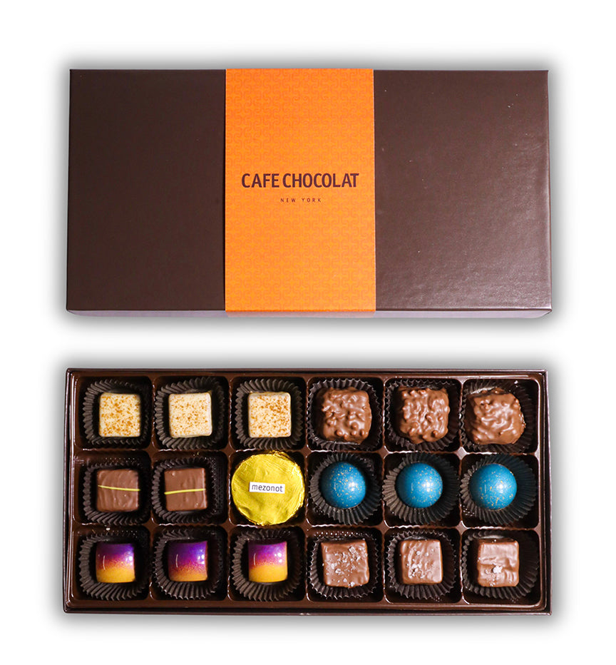 Our classic bonbon box including a chocolate sandwich cookie fulfills the Purim mitzvah in one package.
