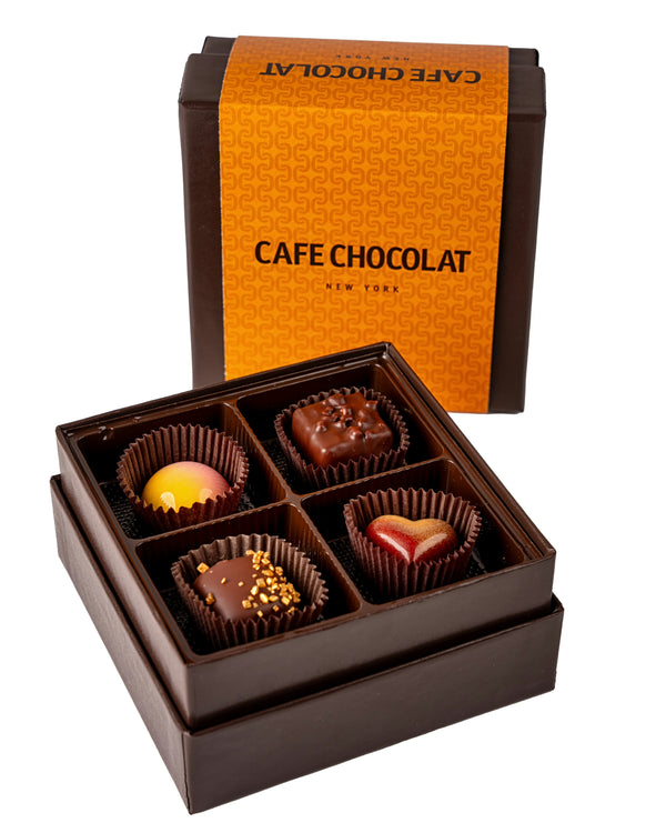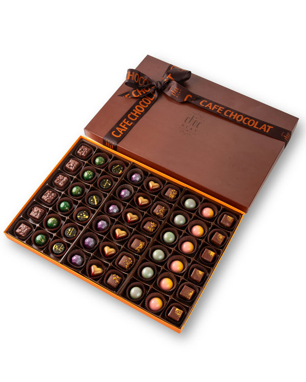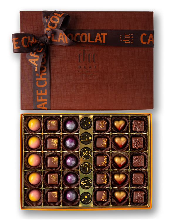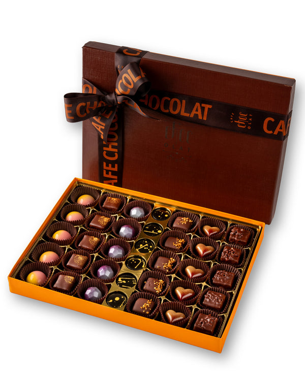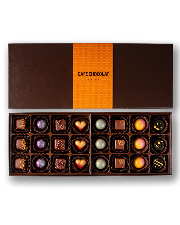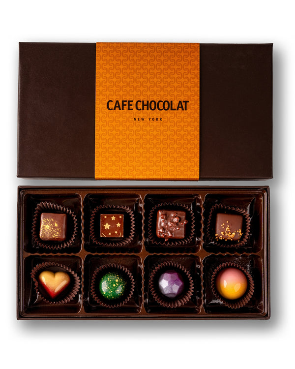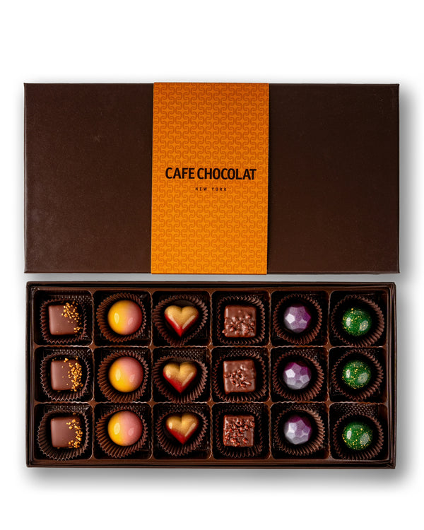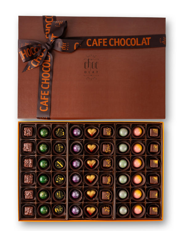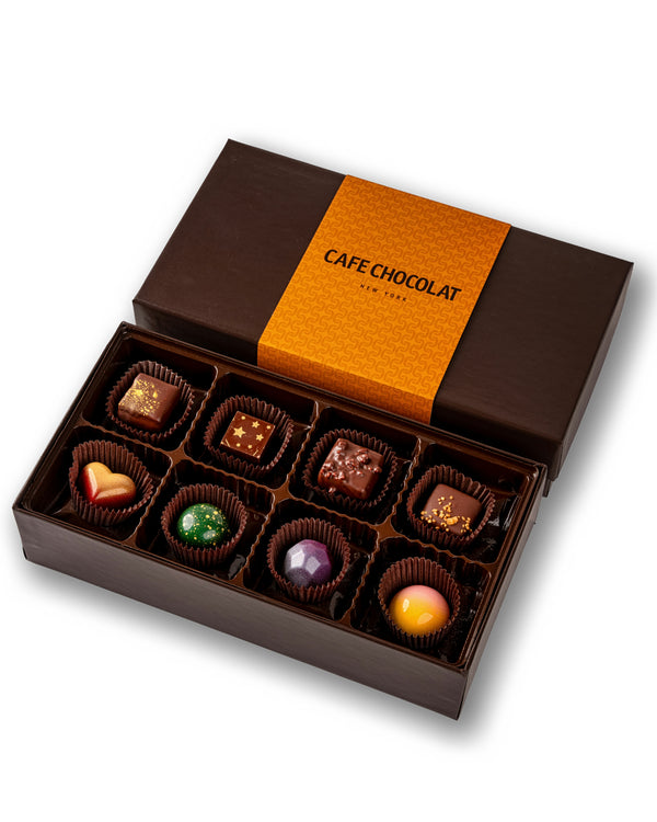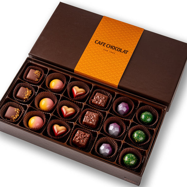 This collection is a true indulgence for chocolate connoisseurs who appreciate the finest, ethically sourced ingredients and exquisite flavors. Select from our assortment of chocolate gift boxes filled with classic and seasonal flavors, such as chocolate ganache, salted caramel, raspberry, hazelnut praline, and more. This non-dairy and vegan gift box collection is a celebration of the finest vegan ingredients, craftsmanship, and environmental consciousness, making it the perfect choice for those seeking a truly remarkable and guilt-free chocolate journey.